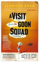 Ik had al heel lang zin eraan te beginnen. A visit from the goon squad van Jennifer Egan (in het Nederlands: Bezoek van de knokploeg). Voor mijn verjaardag had ik in Selexyz op het Amsterdamse Koningsplein een lijstje gemaakt van boeken die me aanspraken. Waaronder dus die. De kaft deed ‘t ‘m natuurlijk weer, maar dit boek kreeg ook zó veel aandacht overal; het was gewoon niet te missen.